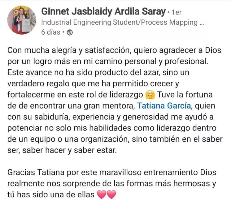 Me dedico a desarrollar planes de entrenamiento, formación y acompañamiento, enfocados en liderazgo, no solo aplicando modelos teóricos sino experienciales, apoyada en mis años de experiencia laboral, me apasiona trabajar con las personas ayudando a desarrollar su máximo potencial con el fin de mejorar sus vidas tanto a nivel personal como empresarial.